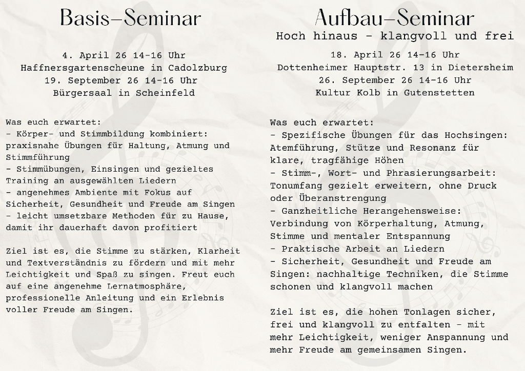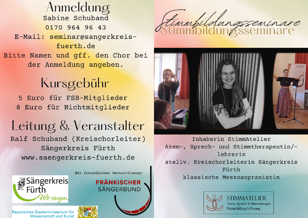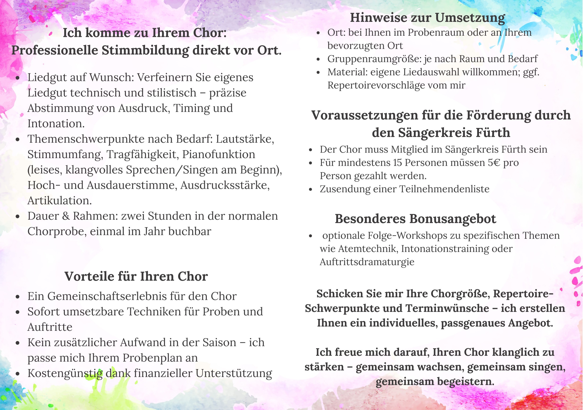 Stimmbildungsworkshop in einem Chor 90min (Finanzielle Unterstützung durch den Sängerkreis Fürth, wenn der Chor Mitglied im Verband ist.)